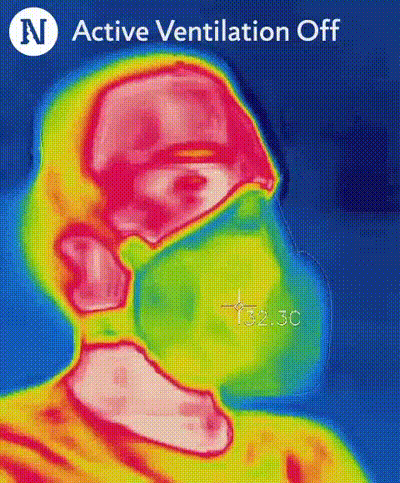 The electronic vent significantly reduces the temperature inside the facepiece, as shown by the thermal camera analysis.